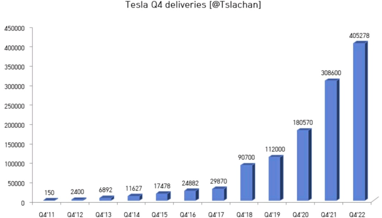 하지만, 4분기 기준 인도량은 연도별로 꾸준히 상승하며, 최대 생산 및 인도량의 결과를 가져왔으며, 2023년도에는 텍사스 오스틴공장과 독일 베를린 기가팩토리에서 대량생산이 성공적으로 이뤄진다면, 올해는 50% 성장은 충분할 것으로 예상되고 있습니다.