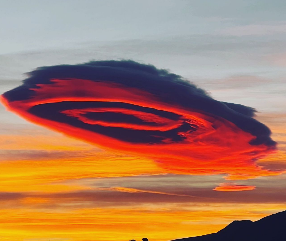 기상학에서 이런 렌즈구름은 지상 2000미터에서 5000미터 상공에서 주로 나타나며, 볼록렌즈를 여러 개 합쳐 놓은 형태로 대기 역전에 위로 올라가지 못한 구름과 강한 바람이 주변 언덕이나 산을 휘감아 돌면서 발생한 소용돌이와 겹쳐서 발생한다고 합니다.