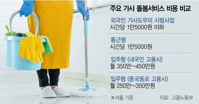 필리핀 가사도우미의 월 이용료는 약 300만 원에 달하며, 이는 초임 공무원보다 높은 수준으로 지적되고 있습니다. 이러한 높은 비용으로 인해 강남 3구(강남·서초·송파) 등 경제적 여유가 있는 가구에서 주로 이용하고 있어, 고소득층을 위한 사업이라는 비판이 제기되고 있습니다.