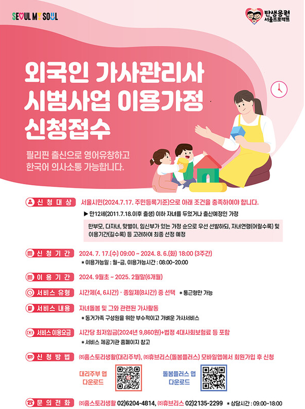 특히, 높은 육아 비용과 가사 노동 부담은 저출산의 주요 원인 중 하나로 지적되고 있습니다. 이에 따라 서울시는 외국인 가사도우미 도입을 통해 가정의 부담을 덜고, 저출산 문제를 완화하고자 이번 시범사업을 추진하게 되었습니다.