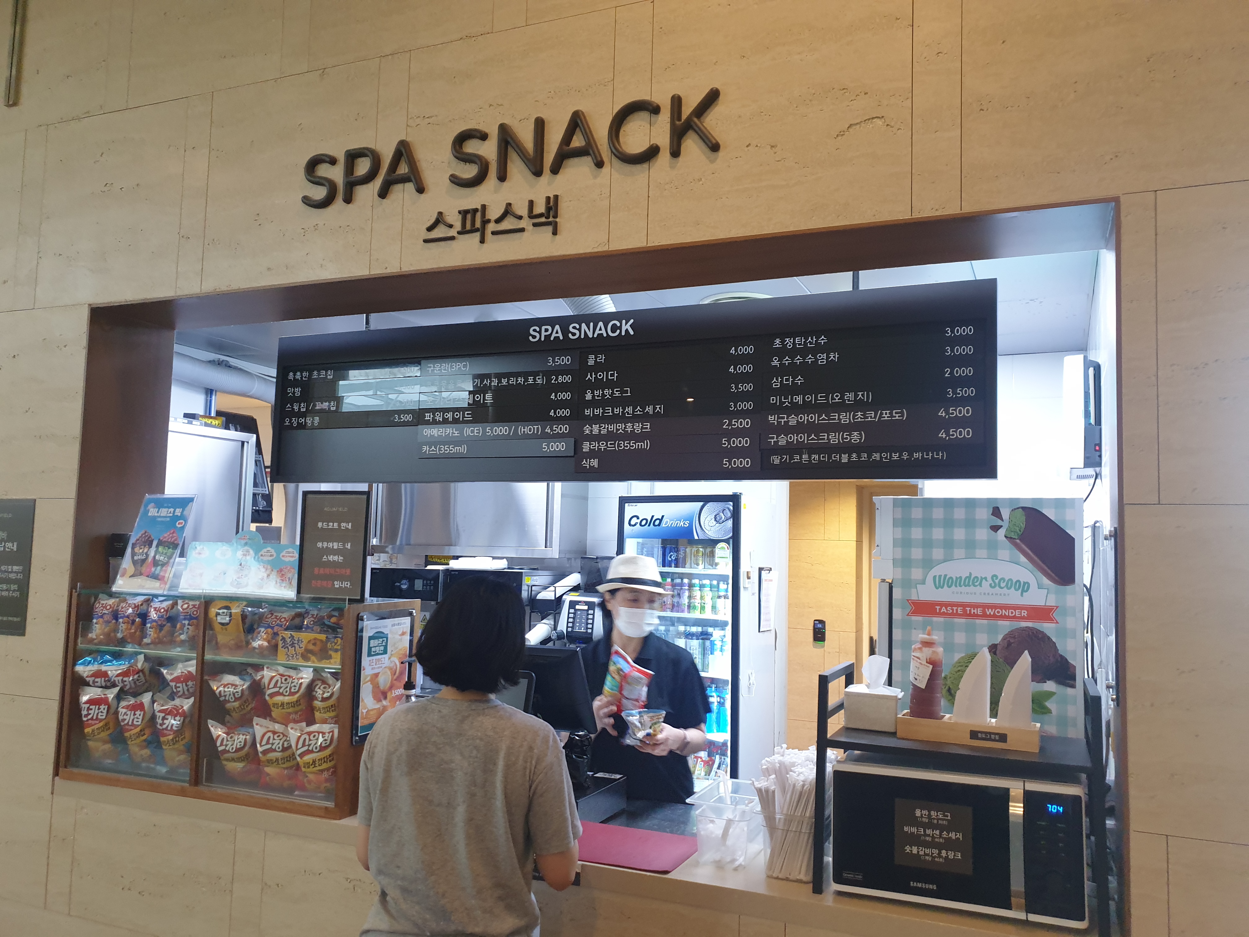 하남 스타필드 아쿠아필드 찜질방에서는 육계장, 비빔밥, 돈가쓰, 짬뽕 등의 식사메뉴도 있고, 과자, 핫도그, 소시지 등의 간식류와 여러 가지 음료수와 아이스크림 등의 디저트까지 다양하게 제공되고 있으니, 돈만 있으면, 찜질방에서 여유를 즐기실 수 있습니다.