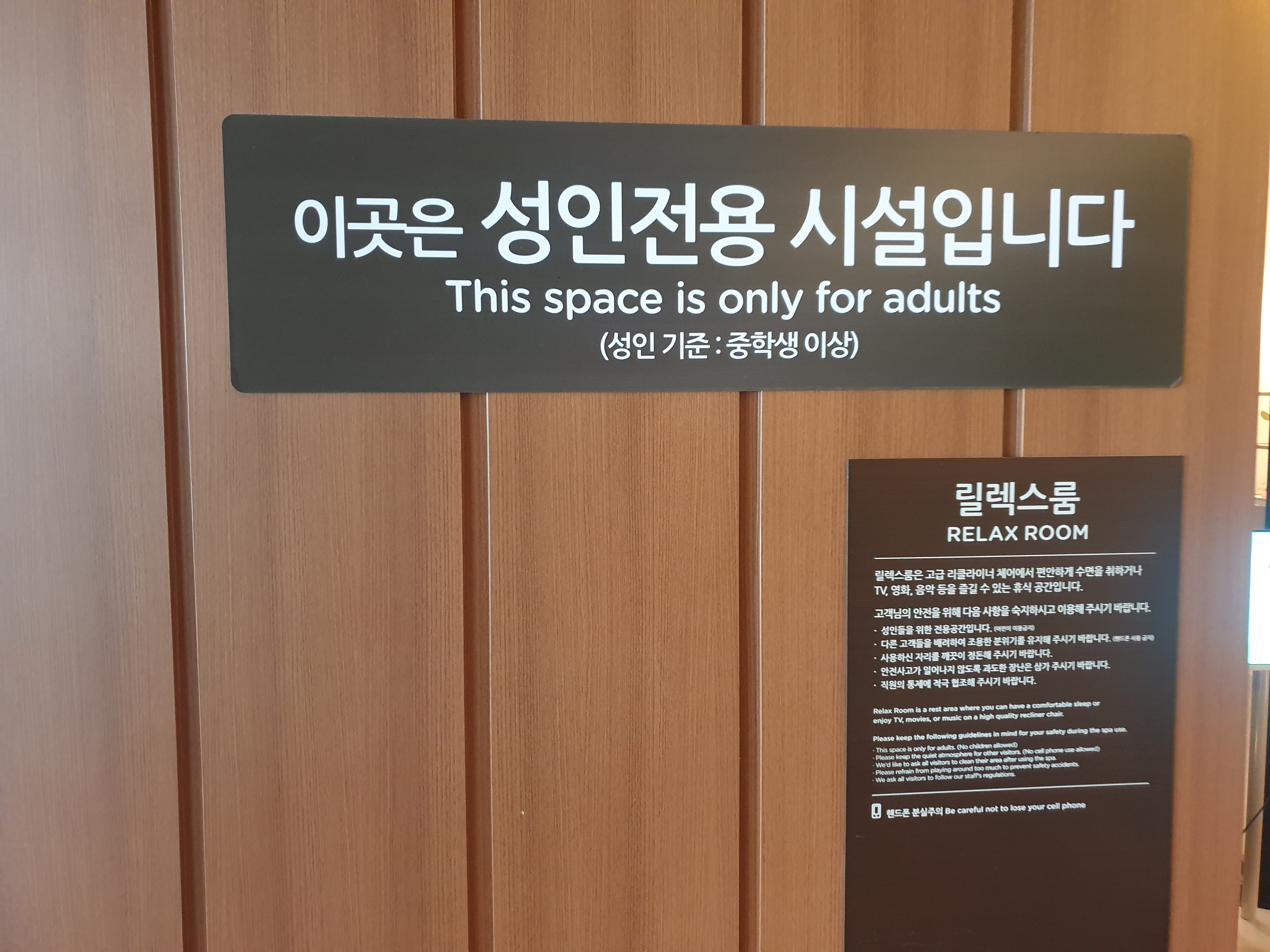 하지만, 이곳은 릴렉스룸으로 성인전용 시설인데, 성인 기준이 중학생 이상..ㅎㅎ