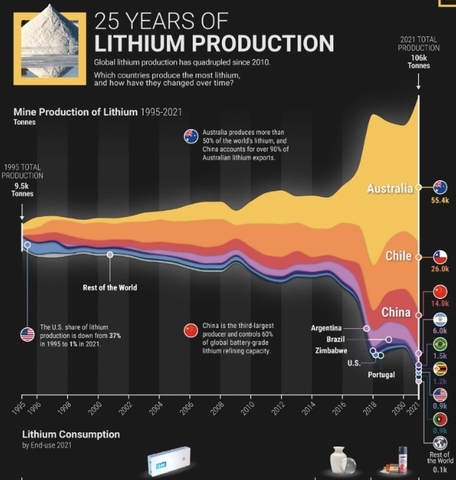 남미의 칠레, 아르헨티나, 볼리비아 등지에도 엄청난 양의 리튬이 매장되어 있다 보니, 이 지역도 리튬의 사우디아라비아라고 불릴 정도입니다. 또한, 호주는 리튬 매장량 2위 국가이며, 전 세계에서 가장 많은 리튬을 생산하고 있는 국가로서, 외교에도 리튬을 가장 강력한 무기로 활용하고 있습니다.