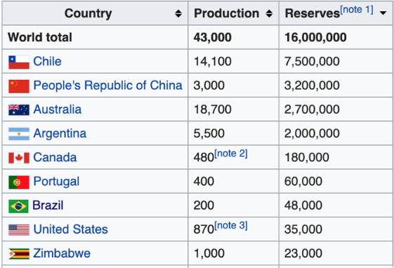 리튬의 매장량 순위를 보셨는데요, 리튬이 많이 매장되었다고 해도, 생산량과는 비례하지 않습니다. 석유도 가장 많이 매장되어 있는 나라가 베네수엘라지만, 생산량은 전 세계 10위안에도 못 드는 것처럼 생산과 비례하지는 않습니다.