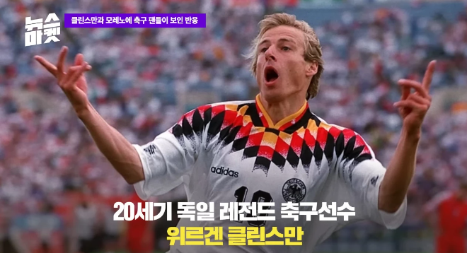 또한, 국가대표팀에서도 10년 이상 주전 스트라이커로 활약하며, 1990년 이탈리아 월드컵, 1996년 유로 우승에 기여했으며, 특히 월드컵에서는 통산 11골로, 독일 국적으로는 클로제 16골, 뮐러 14골에 이어 3위에 올라있습니다. 1994년 미국 월드컵에서는 한국과의 경기에서 2골을 몰아치며, 전반을 독일의 3대 0으로 앞선 이후, 한국에 2골을 허용했지만, 3대 2로 승리를 거둔 후, 16강에 진출했습니다. 클린스만은 1990년대 독일의 슈퍼스타였으며, 독일의 레전드 공격수이며, 유럽 전체에서도 Top 5에는 일류 선수였습니다.