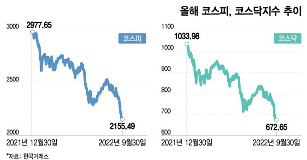 2022년 연초 3000을 바라보았던 코스피 지수는 2022년 9월 말 2,155.49포인트까지 급락하면서, 무려 30%가 넘게 빠지며, 코스피지수 하락률은 코스피지수가 집계된 이후 역대 3번째로 높은 수준으로, 2000년 IT버블 붕괴 때 40% 이상 하락한 이후, 22년 만에 처음 맛보는 급락세였습니다. 이렇게 주가가 빠진 것은 인플레이션으로 인한 강한 금리인상과 고환율 장세로 외국인들은 한국주식을 지속적으로 매도한 결과였습니다. 오늘 알아본 환율 금리 인플레이션의 상관관계와 주가와의 관계를 알아보았는데요, 많은 도움이 되셨으면 좋겠습니다.