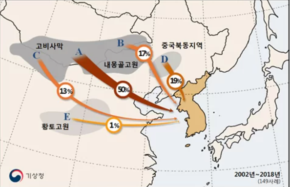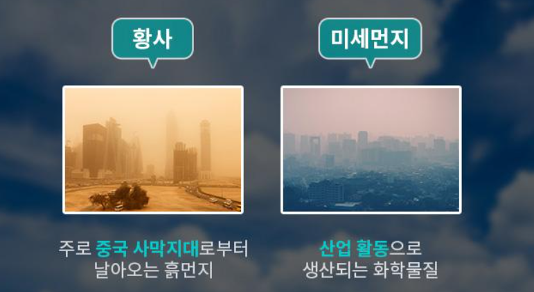 황사는 중국 내몽골 고원과 고비 사막 등지에서 발생하는 모래 폭풍과 흙먼지를 가리키며, 대부분의 황사는 봄철인 4월에 발생하며, 이 때 떠오른 먼지구름은 편서풍을 타고 황해를 거쳐 한반도에까지 도달하여 서서히 가라앉게 됩니다. 매년 봄마다 황사가 발생하고 있는데도 불구하고, 중국과 한국정부는 이에 대한 해결책을 찾지 못하고 있습니다. 중국 베이징의 경우는 공기질지수가 최악인 6급 '엄중 오염' 등급이 계속 측정되는 등, 미세먼지 농도는 1500mg를 넘는 날도 상당히 많은데도 불구하고, 중국 정부는 중국인들의 안전을 생각하지 않는 것 같습니다.