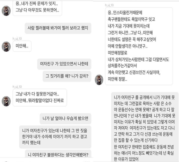 축구선수 황의조 선수에 대한 논란이 사그라지지 않는 가운데, 황의조 선수는 SNS를 비공계처리까지 함에 이르렀는데요. 황의조선수는 그동안 여자친구가 있었음에도 수많은 바람을 피워왔으며, 해외 진출을 핑계로 수많은 여성들과 원나잇을 하는 등 사생활 논란이 심해지고 있습니다.