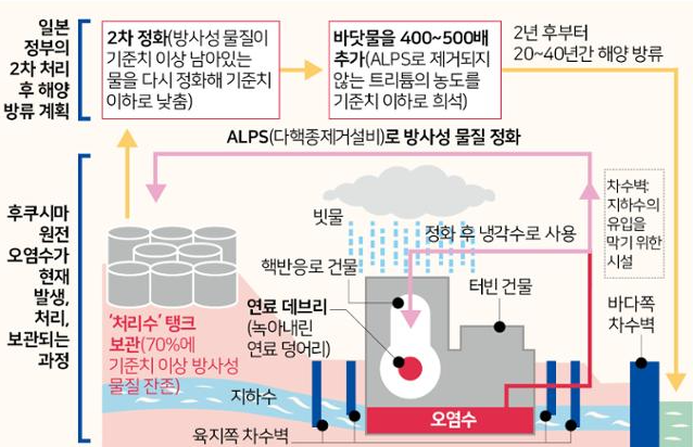 일본은 방류는 국제원자력기구의 리뷰를 받으면서 방류에 대한 정보를 투명하게 공표할 것이라고 밝혔으며, 피지, 투발루, 솔로몬제도 등의 태평양 지역 섬나라를 중심으로 17개국이 가입한 PIF는 태평양 지역 어류에 악영향을 미친다며 거부를 하고 있습니다. 하지만, 일본은 후쿠시마 원전 오염수를 정화 처리하여 방사성 물질을 제거하여 거른 뒤 올봄에 해야 방류할 계획입니다. 이에 따라, 한국의 수산업계의 우려도 커지고 있습니다.