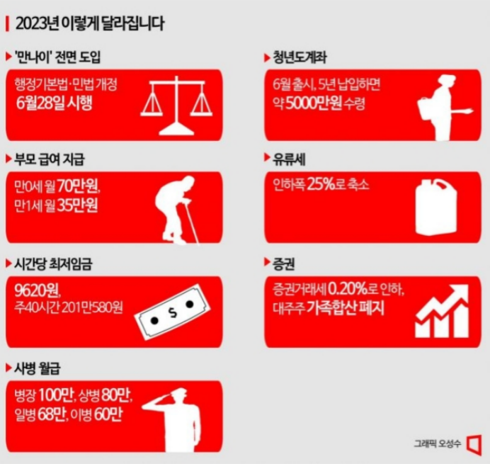 2023년도에 달라지는 복지제도에 대해 정리하여 알려드립니다. 2023년에는 만 나이가 드디어 적용이 되며, 24개월 미만의 영유아를 보유한 부모에게는 35만 원에서 70만 원까지 지급되는 등 2023년에 달라지는 복제제도에 대해 정리를 해보도록 하겠습니다.