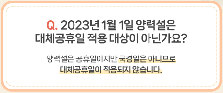 따라서, 1월 1일 양력설은 공휴일이지만, 국경일은 아니므로, 대체공휴일이 적용되지 않습니다.