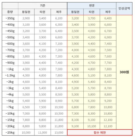 2022년 대비 2023년 택배비용은 300원씩 인상이 되었네요.