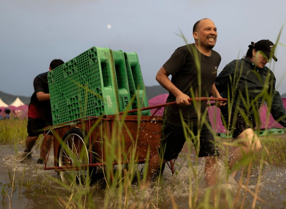 새만금은 현재 땡볕에도 불구하고 땅이 고르지 못해, 물웅덩이라서, 저 플라스틱 빠레트를 깔고 텐트를 치고 있는 상황입니다. 비가 온 뒤 배수가 전혀 되지 않아서, 청소년들을 지휘하고 있는 선생님들이 직접 빠레트를 날아가며 일을 하고 있는 상황이며, 웅덩이에 벌레 투성이라, 청소년들이 벌레에 물려 병원행을 하고 있는 상황입니다. 현재 새만금에서 천막을 치고 무슨 야영을 한다는 건가요?