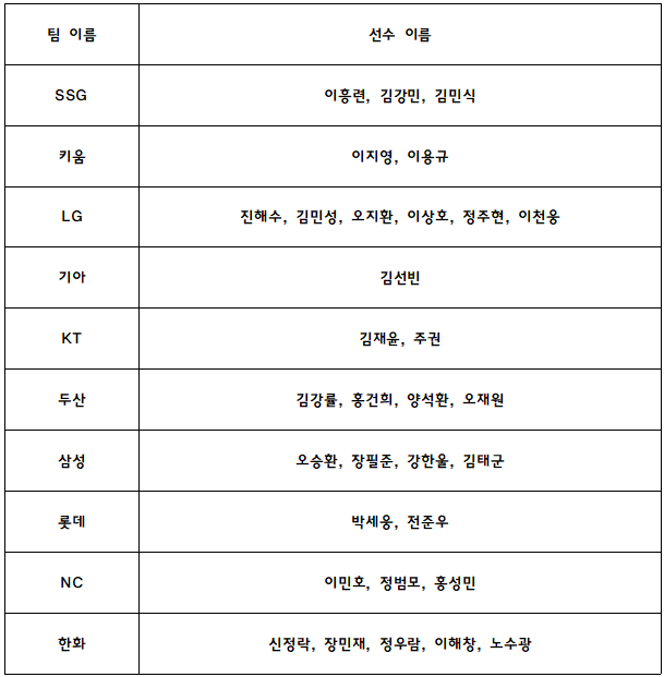 또한, 기아의 터주대감 김선빈 선수도 오지환 다음으로 큰 계약이 기대되는 선수이며, 두산의 양석환, 삼성의 김태군, 한화의 장민재 선수로 이어질 것 같네요