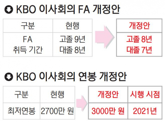 프로야구 선수들의 FA개정안은 아래와 같습니다.