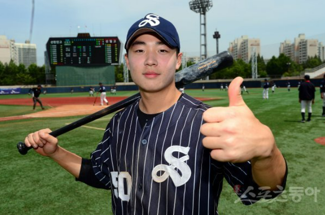 서울고 3학년 여동건은 173cm의 작은 키에 80kg에서 보듯이 다부진 체격을 가진 제2의 정근우라는 수식어를 듣고 있는 낸 야수이며, 타율 0.397, 홈런 3개, 타점 17개, 도루 11개, 출루율 0.494, OPS 1.177를 기록하고 있는 타격 성적으로서는 어마어마한 성적을 기록하고 있는 내야수입니다. 현재 서울고 주전 유격수로 메이저리그 LA 다저스의 무키 베츠를 롤모델로 삼고 있는 선수이며, 무키베츠의 등번호 50번을 달고 있습니다. 유격수로서 좋은 수비와 빠른 발을 보유하고 있으며, 홈런도 3개를 기록할 정도로 장타율도 기록하고 있는 선수입니다. 또한 이번 청소년 대표 주전 유격수로서도 주목하고 있습니다.