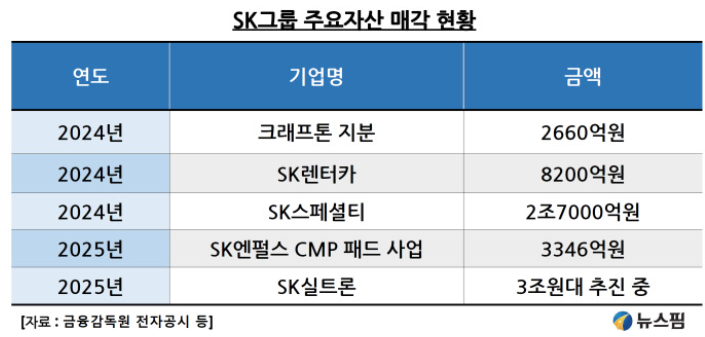 이 때문에 SK그룹은 작년부터 비주력 계열사 및 지분을 빠르게 정리를 하고 있으며, 크래프톤, SK렌터카, SK스페셜티, SK엔펄스 및 SK실트론 등도 매각 및 매각을 추진 중에 있습니다.