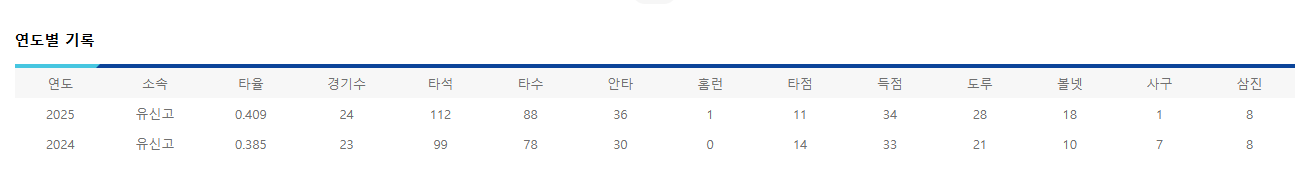 이미 고등학교 2학년 때 OPS 1.064를 기록할 정도로, 현재 두산의 박준순보다도 더 뛰어난 타격 실력을 보여준 오시후 선수가 어떤 팀에 들어갈지 너무 궁금해지네요.
