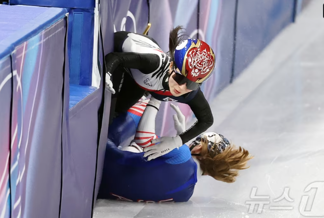 한국 대표팀이 쇼트트랙 혼성 2000미터 계주 준결승전에서 미국선수와 충돌하면서, 결승 진출도 하지 못하는 매우 아쉬운 결과를 가져왔는데요..