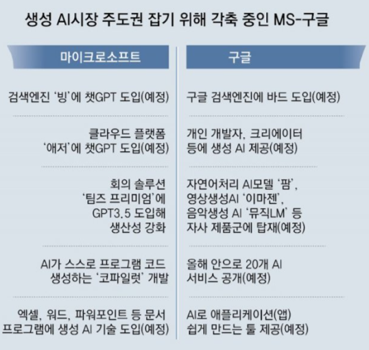 마이크로소프트가 투자한 챗GPT는 대화형 인공지능으로, 간단한 회원가입으로 누구든지 무료로 이용할 수 있는 대화형 언어로봇으로 최근 엄청난 가입자수를 만들어냈으며, 개발사인 오픈 AI는 2015년 12월 창업한 이래로, 큰 금액의 투자금을 얻게 될 것으로 생각되며, 그와 동시에 구글도 AI챗봇인 바드를 론칭하면서 이 양사 간의 AI 생태계 격돌이 주목을 받고 있습니다. 이번 시간에는 MS 오픈AI의 챗GPT와 구글 AI챗봇인 바드에 대해 소개해보겠습니다.