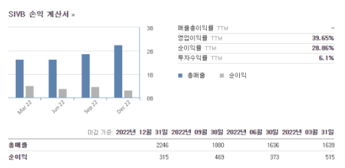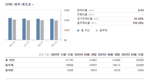 SVB 실리콘밸리 은행은 2022년까지만 해도 영업이익률이 무려 39.65%였으며, 순이익률 또한 28.86%로 상당히 재무제표가 좋은 회사였으며, 총부채비율은 159.26%로 상당히 높은 부채비율을 보유한 은행이었긴 하였습니다.