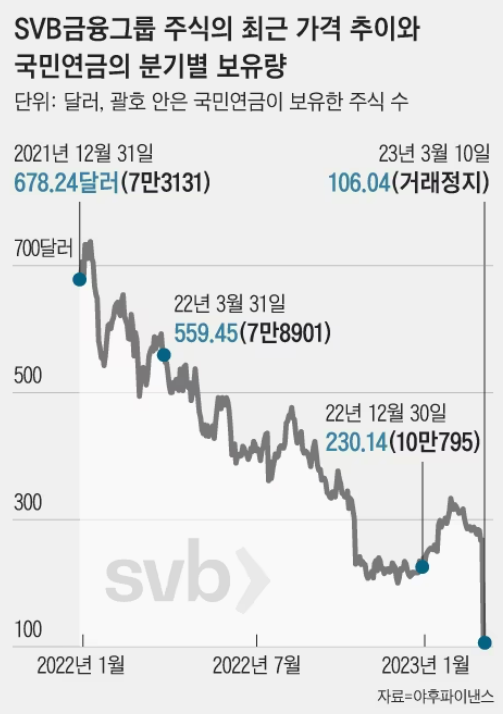 국민연금은 SVB 실리콘밸리은행의 주식을 2022년 말 기준으로 100,795주 보유하고 있으며, 작년 말 기준으로 2300만 달러(약 300억 원)의 가치를 가졌지만, 현재는 작년 말 기준으로부터 -64.15%나 하락하면서 거래정지가 선언되었습니다. 가뜩이나, 젊은 사람들이 강제적으로 내고 있는 국민연금을 추후에 받을 수도 없을 듯한데, 여기에서 국민연금의 손실이 더 커지면, 국민연금은 대한민국 국민들에게 지급해야 할 금액이 점점 더 줄어들 수밖에 없습니다. 여기에 2022년도 국민연금의 손실액은 아래와 같습니다.